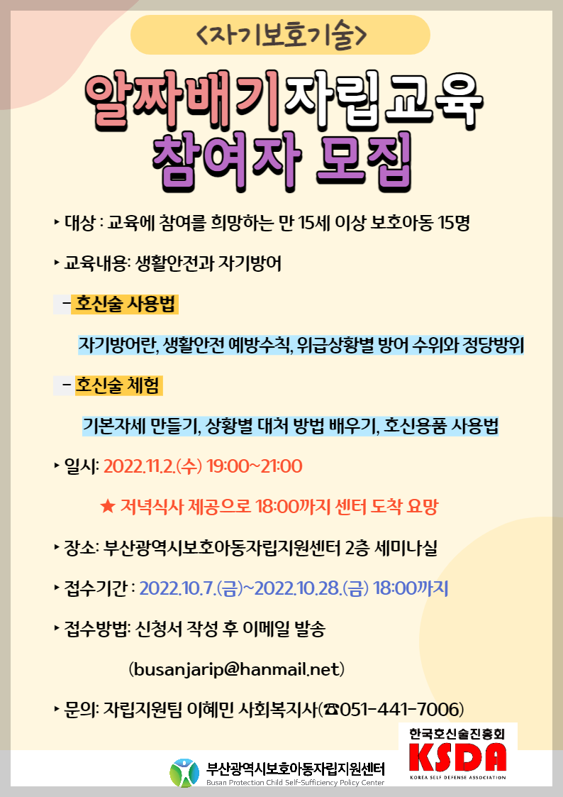 장소 : 부산광역시보호아동자립지원센터